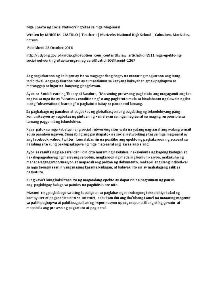 Mga Epekto Ng Social Networking Sites Sa Mga Mag Aaral Pdf