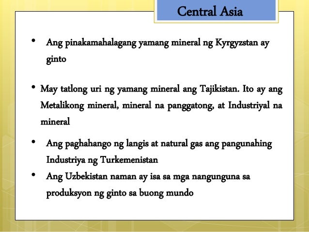 Samakatuwid ito ay mga yamang natural at hindi ginawa o binago ng tao. Ito ay ang yaring lugar kung saan nanggaling ang mga etnikong Tajik. Di-metaliko nonmetallic semento marmol aspaltoapogat asbestos 3.