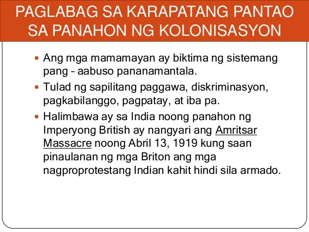 Mga Epekto at Halimbawa ng mga Karapatang Pantao Nobyembre 2018 Ika-limang Pangkat Epekto sa Indibidwal AEpekto sa Indibidwal BEpekto sa Pamilya CEpekto sa Komunidad Mga Epekto ng Paglabag sa Karapatang Pantao Sikolohikal na Suliranin Sikolohikal na Siliranin Pisikal na. Ang bawat taoy may karapatan sa isang pagkamamamayan. Ad Shop The FARFETCH Sale With Up To 50 Off Plus Get An Extra 20 Off For Black Friday.