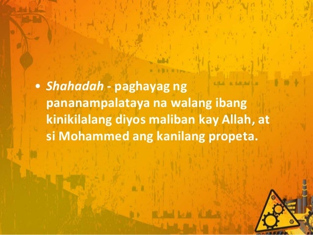 Walang ibang Diyos maliban kay Allah at si Muhammad ang Kanyang propeta. Dapat silang magbigay ng limos sa mga mahihirap. Ang pinaka sentro ng Pananampalatayang Islam.