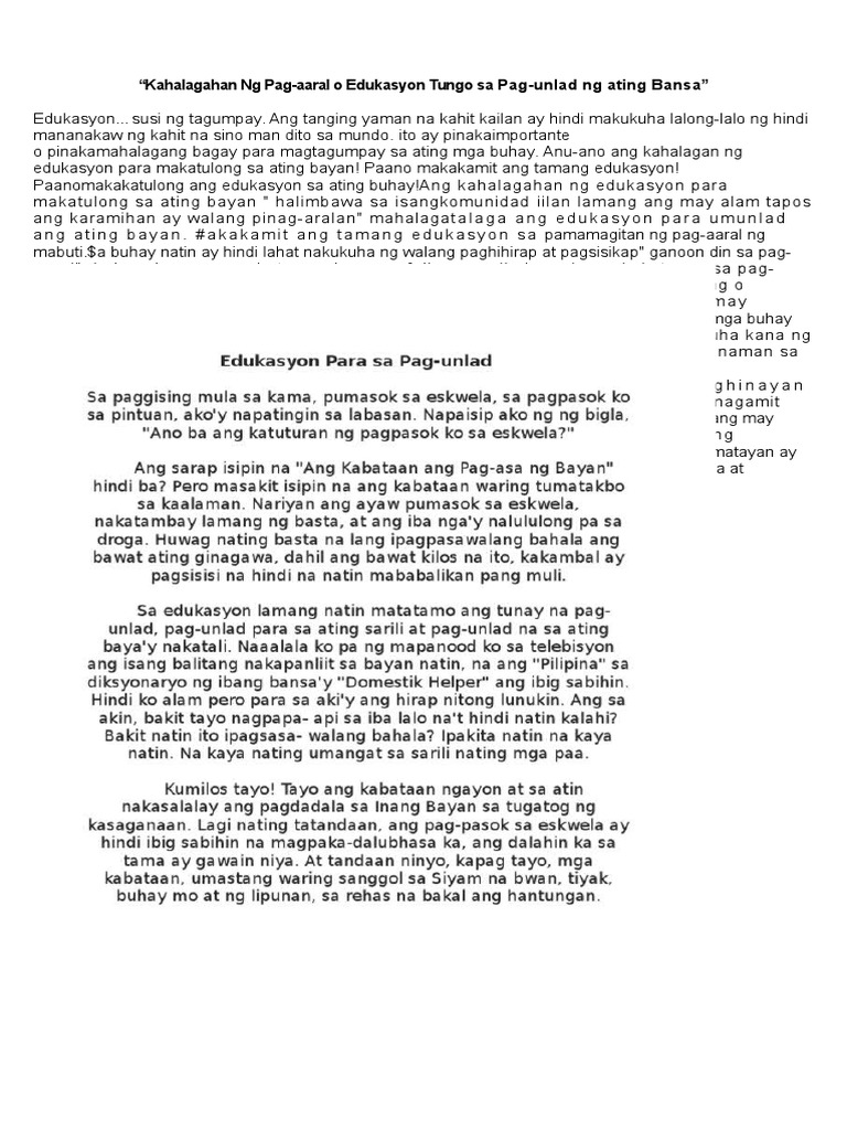 Kahalagahan Ng Pag Aaral O Edukasyon Tungo Sa Pag Unlad Ng Ating Bansa Pdf