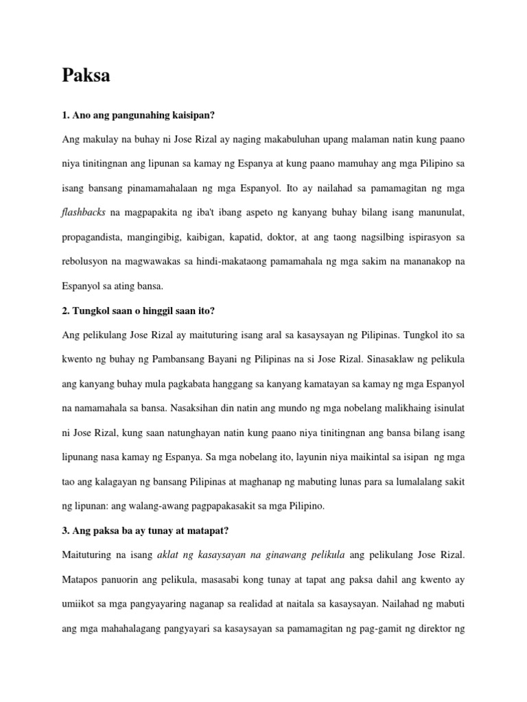 Cauayan City Isabela Nararapat lamang umano na irespeto. Aplikasyon ng mga Kaisipang Nakuha sa Pagbabasa- ang kakayahang iugnay sa iyong personal na karanasansa mga kasalukuyang isyu at kaganapan sa lipunan. 11-01-2020 Higit pa rito mahalaga rin ang Filipinolohiya bilang sistematikong pag-aaral ng Pilipinong.